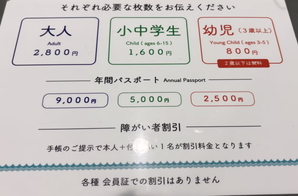 - チケット:大人2,800円、小人(小中学生)1,600円、幼児(3歳以上)800円